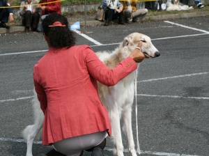 審査中にハンドラーさんがこの子を抱えたとたん、前のめりに倒れてしまったりして、かなり別な意味でも目を引きました。