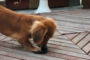 「あずきっ!」と膝をたたいて呼ぶと、すごい勢いでダッシュ