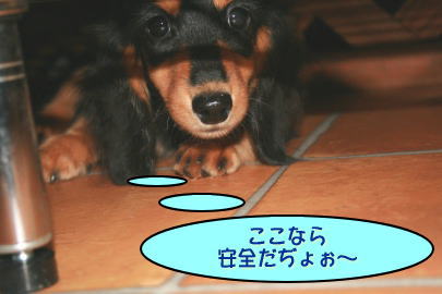 ビビッたうりちゃんは、マイブームの棚の下へ避難、避難。