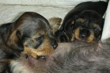 3姉妹のお姉ちゃん達に加えて、先住犬ミニチュアロングダックス・クリームの「マルク」くんが