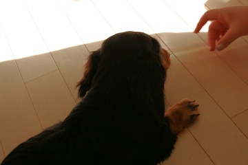 コレを何度か繰り返すと、人差し指で床をトントンと叩いただけでフセするようになります。