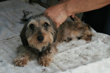 バリカンだと今あるコートを短くするだけなので、レッドなのにまるでソルト&ペッパーの