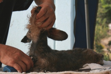 お顔周りは、バリカンで・・・