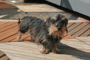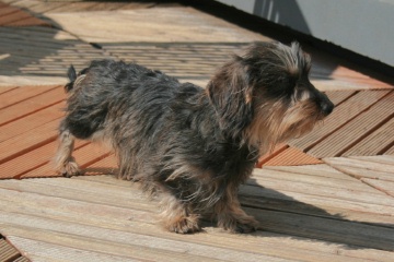 が眩しくて、目を細めてしまいました。カニンヘンワイヤーダックスの『くるみ』です。