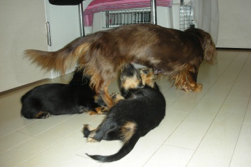 たまたま買ったダックスの魅力にとり憑かれ(?)る。以来ドンドン増え続け、気付けば(気付けよ!)ブリーダーになってました。