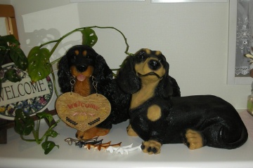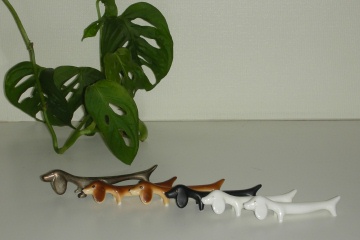 実は師匠の家で見かけていたこの子たちのようなダックスの置物を探していたのですが、