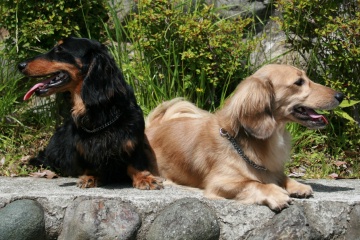 ゴールデン・レトリバーの「くるみ君」と、ラブラドール・レトリバーの「レディちゃん」