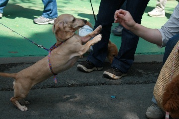「おすわり」「ふせ」などをしつける時に、ほうびを与えながらしつけをし、かみついたりする悪い