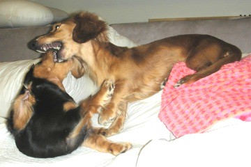 迫力満点の画像なり。巣立ち当日のCOCOちゃんと、ママWANまろん。最後の教育的指導の図。