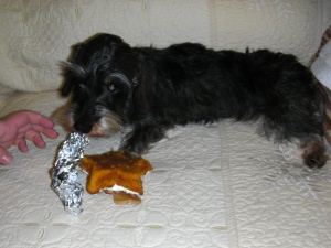 袋に残っていた粉々フードを舐め舐めしてましたっ