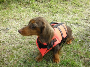 の開始です。↑ライフジャケットを着けた『ちょこ』